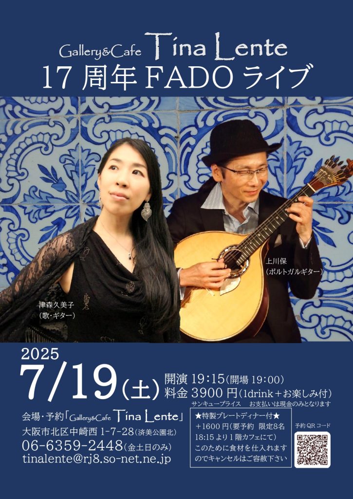 6月25日(金)「ファド千夜一夜 第二夜」大阪・四ツ橋 フィドル倶楽部