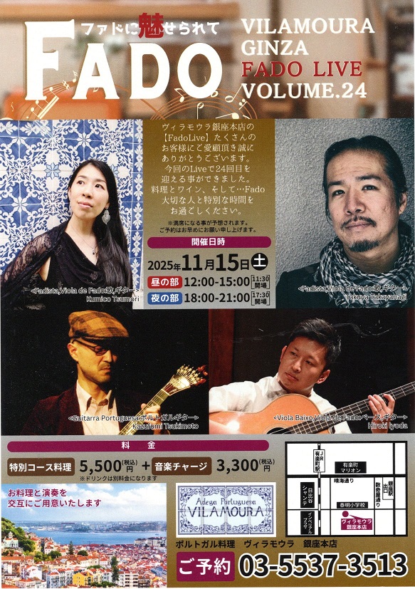 はい、人気ポルトガル料理店「ヴィラモウラ銀座本店」さんのファドライブに